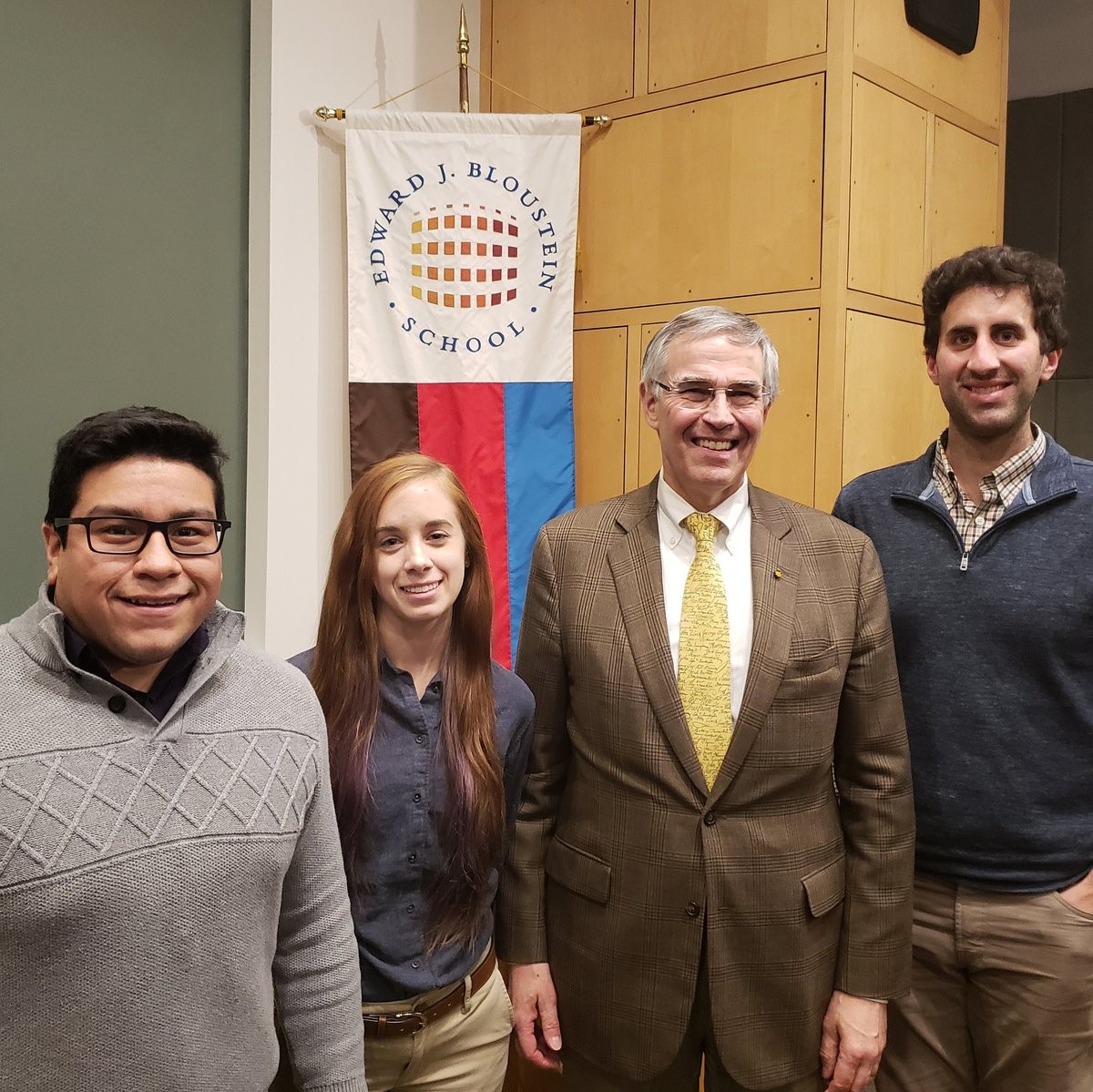 Science Policy and Advocacy at Rutgers members pose with Rush Holt after his talk at the Bloustein School. From left to right (Johnny Quispe, Emily Atieh, Rush Holt, and Brian Canter).