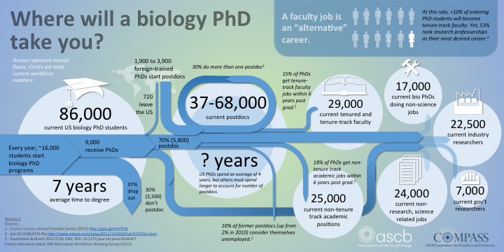 Slide1 *While these names are fictitious to protect the individuals, these situations are based on real events.* Referenced Articles and Additional Reading: https://www.bloomberg.com/view/articles/2015-04-22/the-downside-of-the-bull-market-in-graduate-school http://www.nature.com/news/2011/110420/full/472276a.html https://elifesciences.org/content/5/e17393 http://thegradstudentway.com/blog/?p=1601 http://www.ascb.org/2014/04/11/where-will-a-biology-phd-take-you/