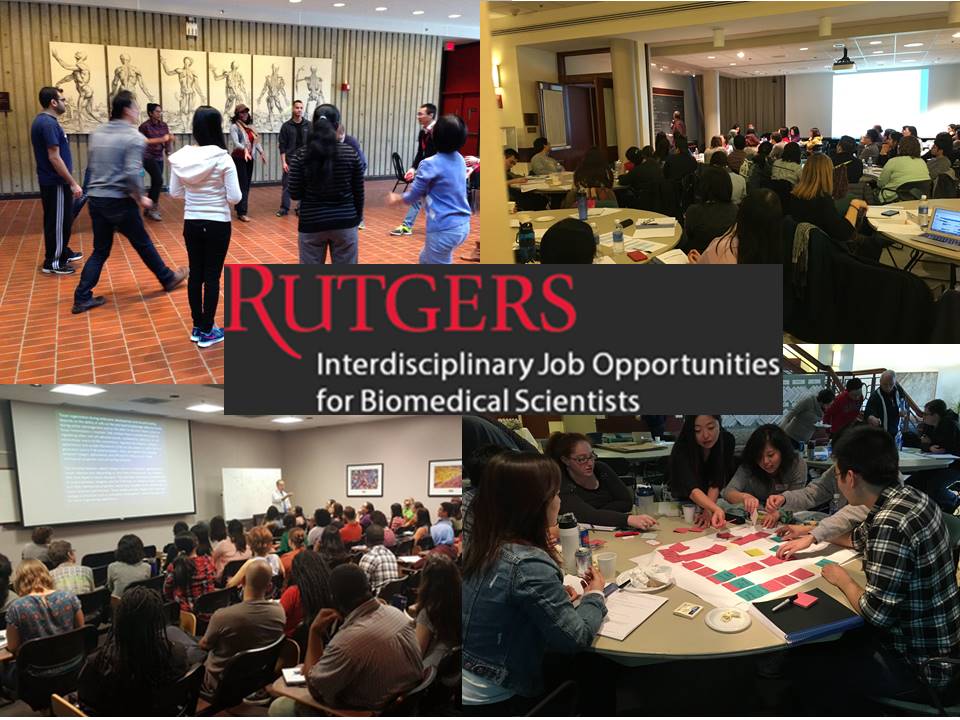 In September 2014, the NIH Broadening Experiences in Scientific Training (BEST) Initiative awarded Rutgers University with a grant to initialize and establish the Rutgers Interdisciplinary Job Opportunities for Biomedical Scientists (iJOBS) program, which aims to better prepare biomedical students and postdocs for nonacademic careers. As we reach the two year mark, let’s take a brief review of the successes and challenges so far, and then follow up with a sneak preview of what is coming ahead. iJOBS in Review To successfully lay down the foundations of the iJOBS program and ensure that biomedical trainees are aware of its existence, the grant team made a great effort to disseminate information about iJOBS and recruit participants. This was achieved during the Fall 2014 semester by conducting several informational seminars, and by giving participants every assistance possible in order to get permission and support from their faculty advisors. Of the principal investigators (PIs) who have responded, we have a 97% approval rate. As mentioned in a previous blog post, iJOBS has three phases, or levels of training opportunities for participants. Phase I consists of different types of events: career panels on different professions (e.g. clinical and regulatory science, government research, academic research, non-profit, medical science liaison); seminars and workshops on leadership, science communication, networking, and other essential professional skills; and site visits to industrial partners in New Jersey (Eli Lilly, Novartis, Merck). In addition to this, the leaders facilitate an annual iJOBS symposium and career fair. Workshops and career panels were initially offered only to trainees on Busch/Robert Wood Johnson Medical School and New Jersey Medical School campuses. However, in the most recent academic year, the training program sessions were made available to over 1300 Rutgers PhD students and postdocs, including trainees from Rutgers Cook/Douglas, Newark, and Camden campuses. Not only was iJOBS able to fulfill the NIH mission to reach out to non-BEST institutions, but also the program is currently available to all PhD degree granting institutions in New Jersey. Participants from Princeton University, New Jersey Institute of Technology, Stevens Institute of Technology, and Rowan University have taken advantage of iJOBS events free of charge. Beyond this, word about iJOBS has even spread beyond the state borders, and trainees from Stony Brook University, the Icahn School of Medicine at Mount Sinai, and other schools have attended several iJOBS events. In September 2015, Phase I activities were expanded to increase the number of interactive workshops and case studies on different topics such as patent law and consulting. [caption id="attachment_1115" align="aligncenter" width="960"]