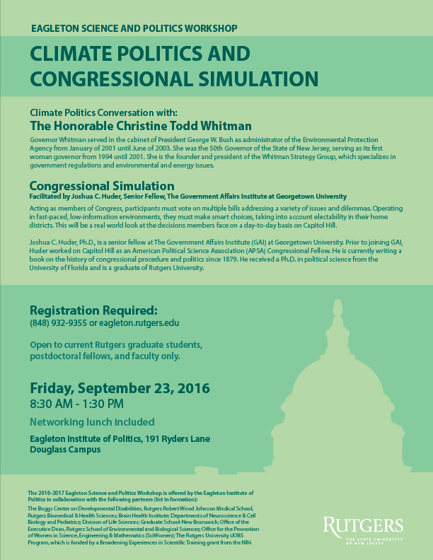 iJOBS Workshop: The Politics of Climate Change with Christine Todd Whitman